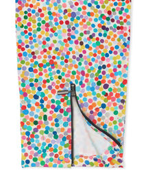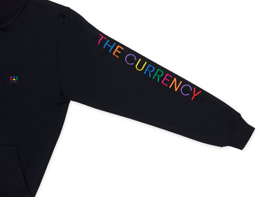 At the heart of this collection lies a reversible bomber jacket, a jogger, hoodies, and t-shirts. These garments serve as canvas for the artistic expressions found within the Currency collection, featuring the distinctive dots and text prints that encapsulate its essence.